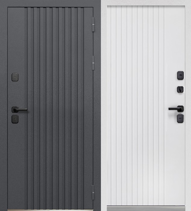 Отделка и цвет: Внешнее исполнение металл. Наружная окраска - Сатин графит (Муар 7024). Внутреннее исполнение - МДФ 10мм Цвет внутренней панели - Белый эмалит.